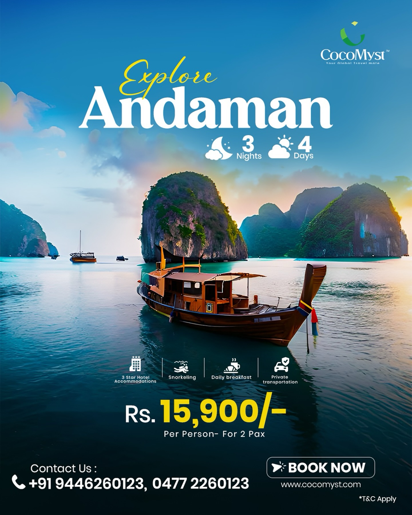 Founded with a vision to make travel seamless, inspiring, and memorable, CocoMyst Travel and Tourism Pvt. Ltd. focuses on providing end-to-end travel solutions — from flight bookings and hotel reservations to guided tours and travel insurance. The company’s expert team ensures that every detail is handled with care, offering travelers a hassle-free and enriching journey from start to finish.
