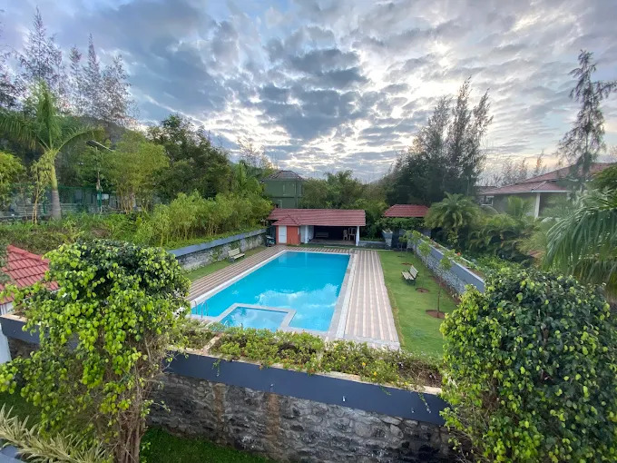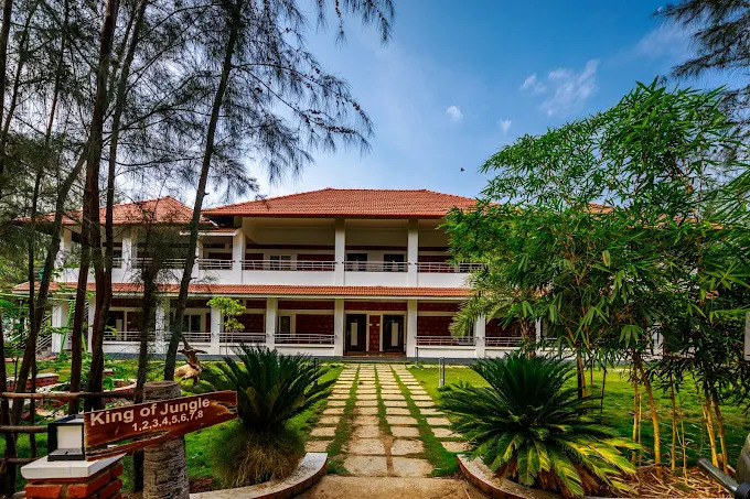 SR Jungle Resort is a scenic jungle-themed resort located in Anaikatti, Coimbatore, Tamil Nadu, India — set amidst the lush foothills of the Western Ghats, about ~40 km from Coimbatore International Airport.This expansive nature retreat sprawls over around 15 acres of forested, plantation-style terrain, offering guests a peaceful escape from city life with fresh air, greenery, and hill views. The resort features a variety of accommodation options including cosy cottages, villas, suites, and larger dorm-style lodgings — each with balconies or open sit-outs overlooking gardens, pools, or the surrounding hills.The resort also includes event facilities like banquet halls and conference spaces, making it suitable for weddings, family gatherings, corporate retreats, and celebrations