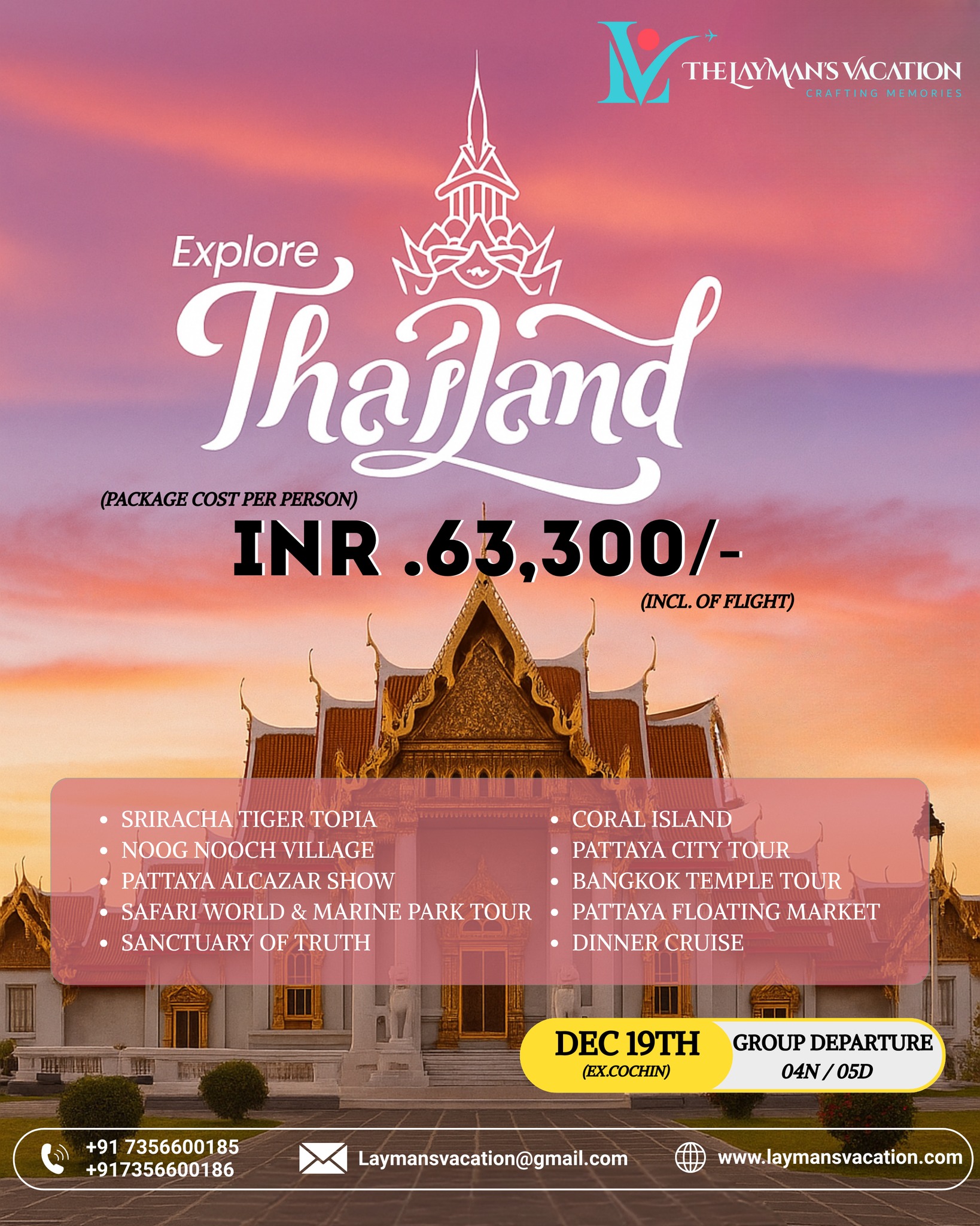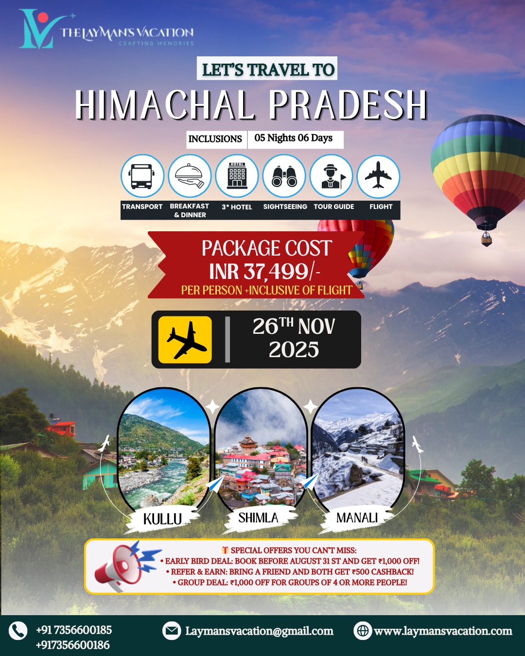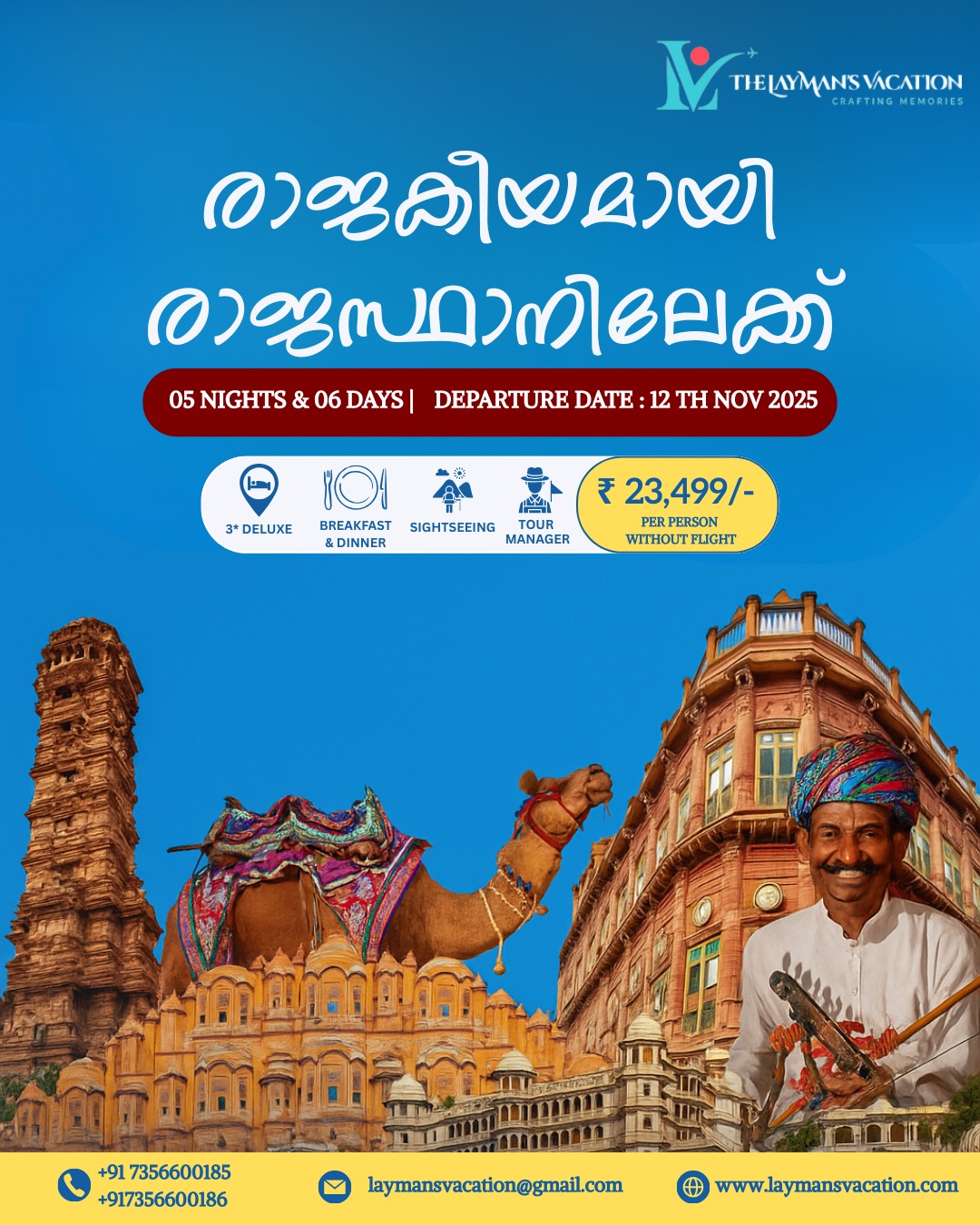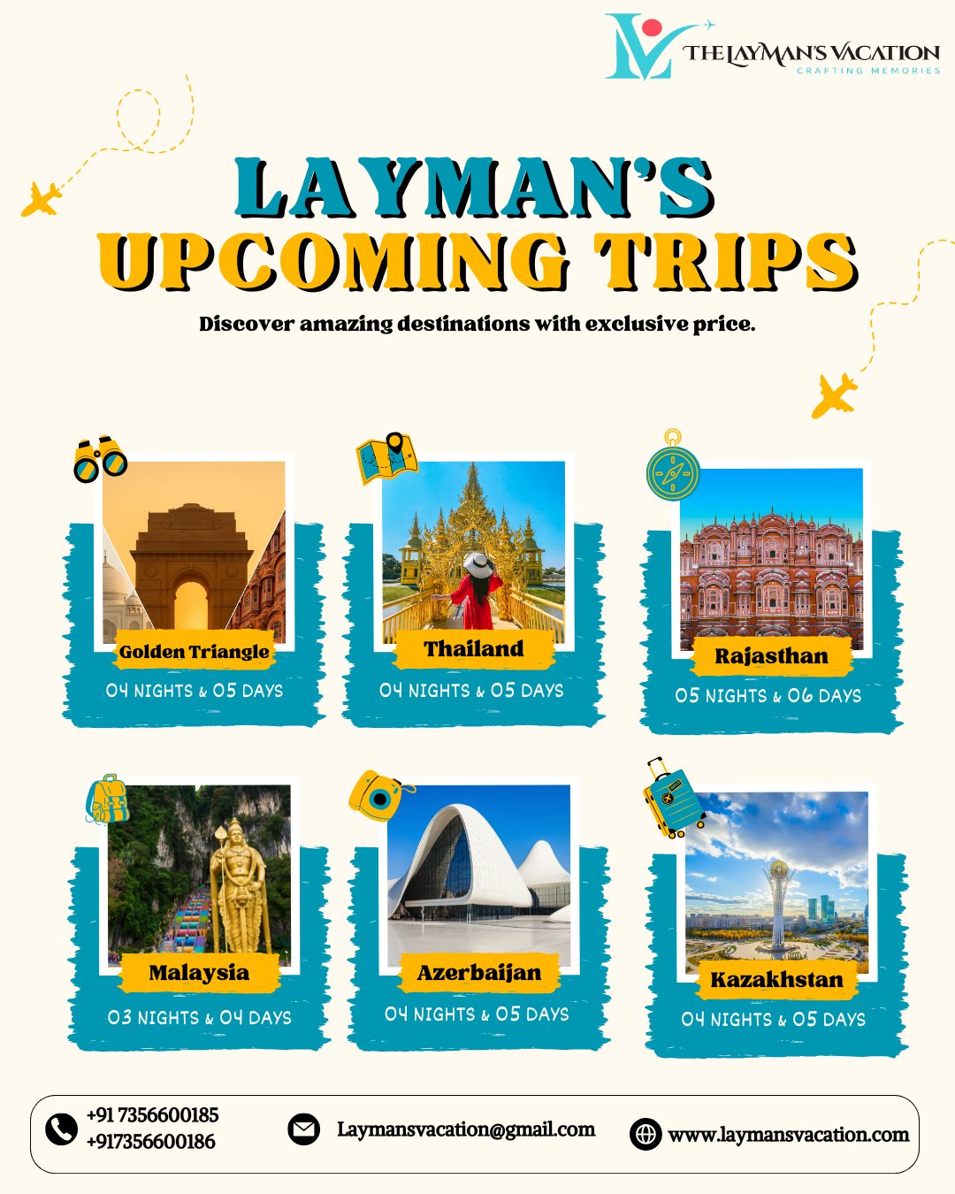 The Laymans Vacation is a trusted travel company dedicated to creating personalized and memorable holiday experiences for every traveler. Specializing in custom tours, hotel bookings, transportation, and complete travel packages, The Laymans Vacation focuses on comfort, value, and authentic local experiences. Whether you’re seeking a relaxing beach getaway, a cultural exploration, or an adventurous journey, the company offers seamless planning and expert guidance to make your trip unforgettable. With professional service and attention to detail, The Laymans Vacation ensures every journey is stress-free and filled with lasting memories.