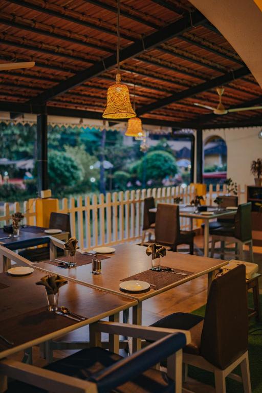 Breakfast is included in many room rates; guest reviews mention Indian breakfast spread (e.g., paratha, omelette, uttapam) with decent variety. The restaurant offers multi-cuisine (Indian/local Goan + international options) and there is room service for comfort.