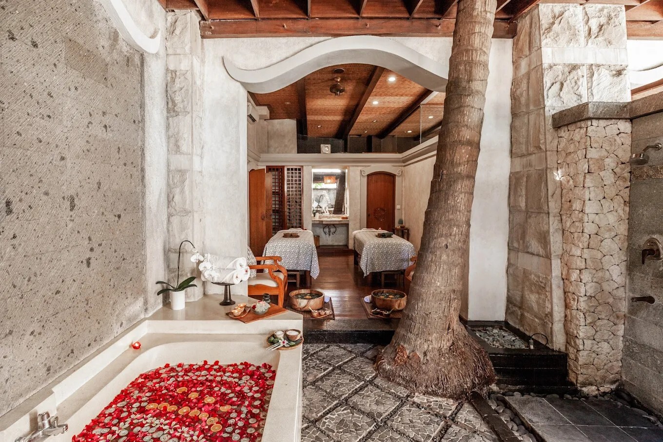 The spa's ambiance is meticulously crafted to provide a sanctuary for the senses. Guests can indulge in royal Balinese garden-inspired treatment rooms that aim to restore mind, body, and soul. The private open-air garden adds an extra touch of luxury to the pampering experience provided by their skilled therapists.