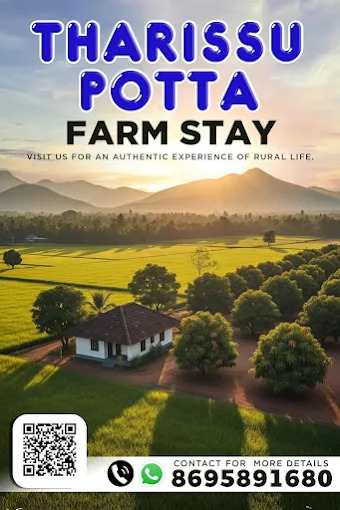 Tharrisu Potta Farm Stay is a peaceful countryside retreat where nature, comfort, and authentic rural living come together. Surrounded by lush greenery and open farmland, this farm stay offers guests a refreshing escape from city life and a chance to reconnect with nature.