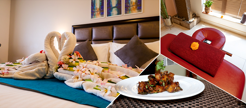 Rooms feature modern amenities: air-conditioning, 42″ LCD TVs (in some), WiFi, power backup.